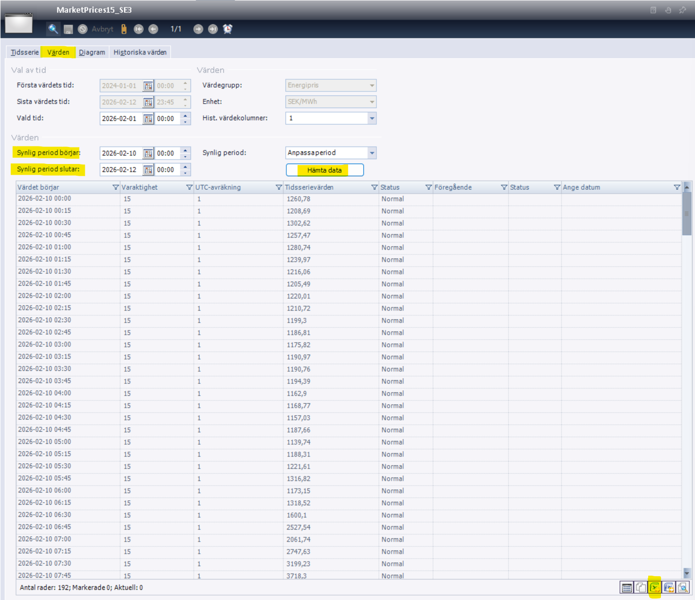 Välj MarketPrices15_SE3 (Kvartspris i elområde SE3)