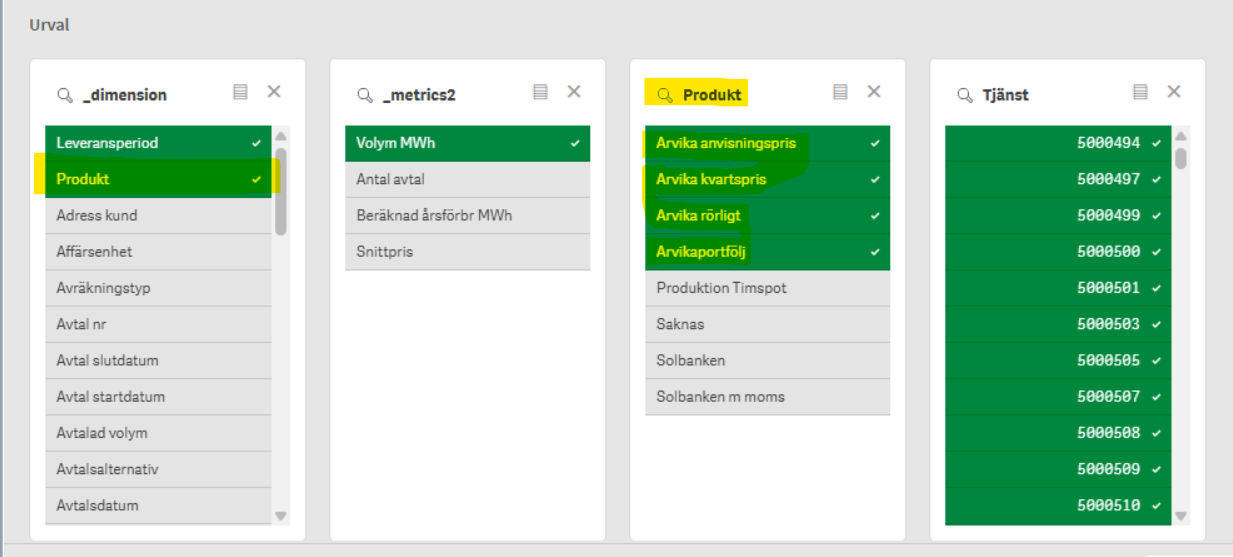 Bokmärket söker efter Avtalsalternativ. Efter 1 oktober 2025 när vi ersatte Arvika Timpris med Arvika Kvartspris får vi i stället söka efter Produkt, och välja alla avtal: