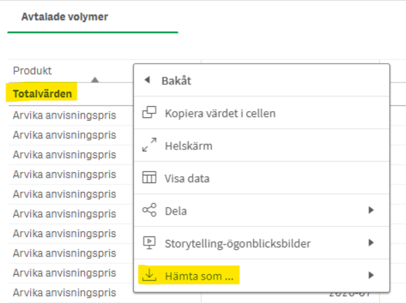 Högerklicka vid totalvärden och välj Hämta som > Data > Exportera >Klicka här för att ladda ner din datafil
